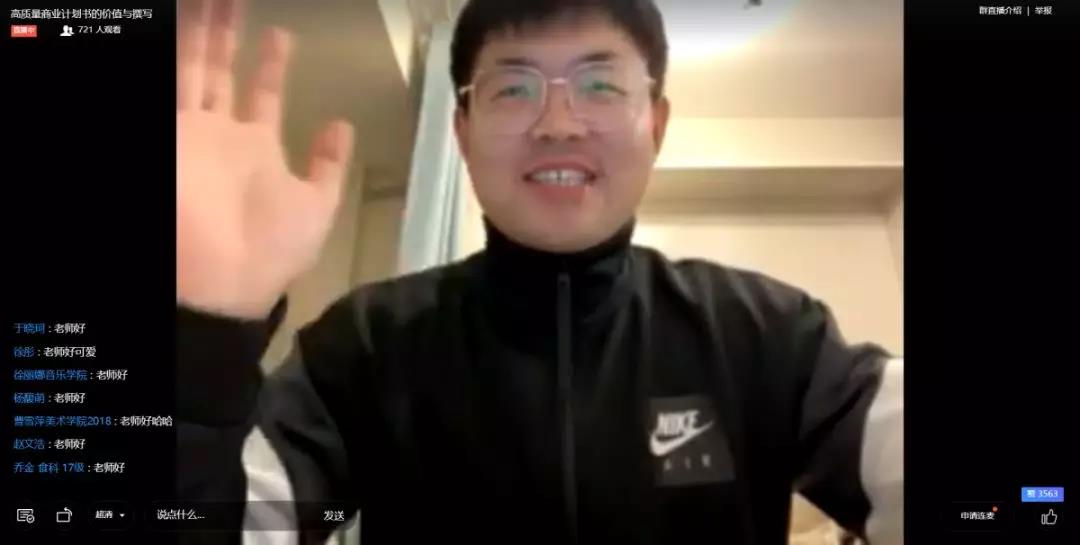 青岛大学创业训练营负责人郑强主持报告会,对主讲嘉宾进行了介绍,并分享了自己的创新创业经历,激动的心情溢于言表,直播氛围十分活跃!